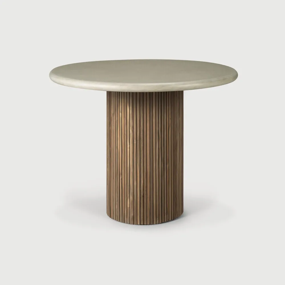 Ethnicraft Eettafels Voor In Je Tuin|Bistrotafels|Ronde Bistrotafel Roller Max Beton en teakhout, 90cm Lichtgrijs