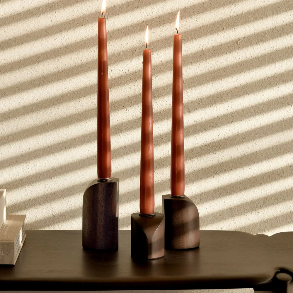Ethnicraft Kaarshouders & Windlichten|Kaarshouder PI Mahoniehout, Set van 3 stuks, kleur Donkerbruin