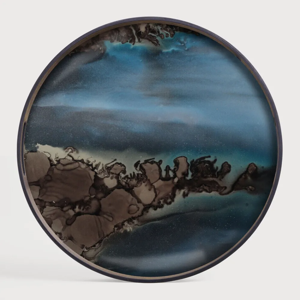 Ethnicraft Keukengerei|Rond Dienblad Linear Flow kleur Slate Slate Grey
