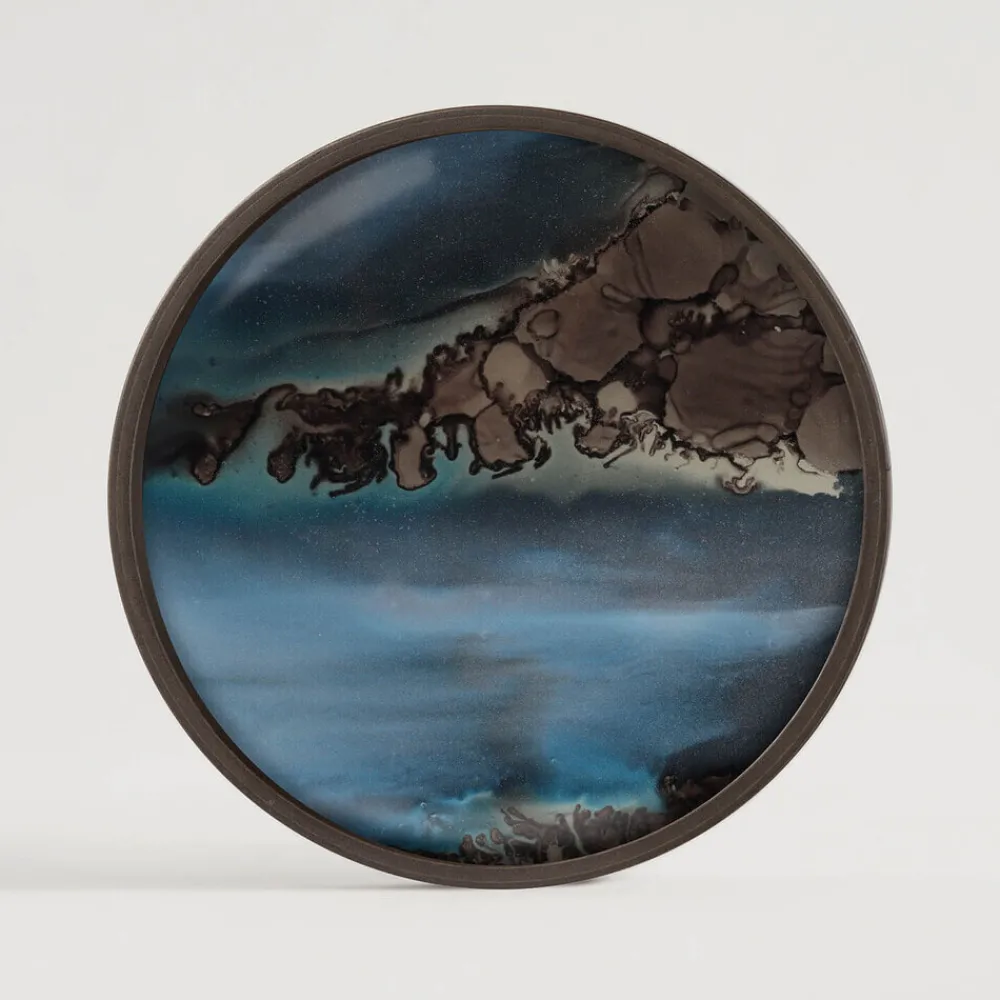 Organische bewegingen en lineaire vormen ontmoeten elkaar in de Linear Flow dienbladen collectie. Het Slate Organic glazen dienblad is geïnspireerd op de inkttekeningen aan het begin van het creatieproces, wanneer het pigment het glas raakt en zijn eigen leven gaat leiden. Aanvullende effecten worden op onverwachte wijze onthuld, waar handgetekende en geschilderde lineaire patronen zorgen voor een werkelijk uitzonderlijke afwerking.