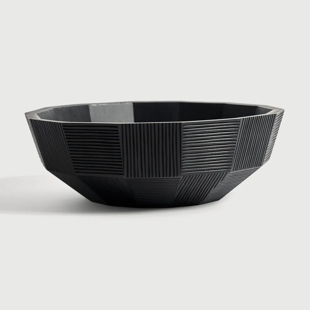 Ethnicraft Keukengerei|Schaal Striped Mahoniehout, 40cm Zwart