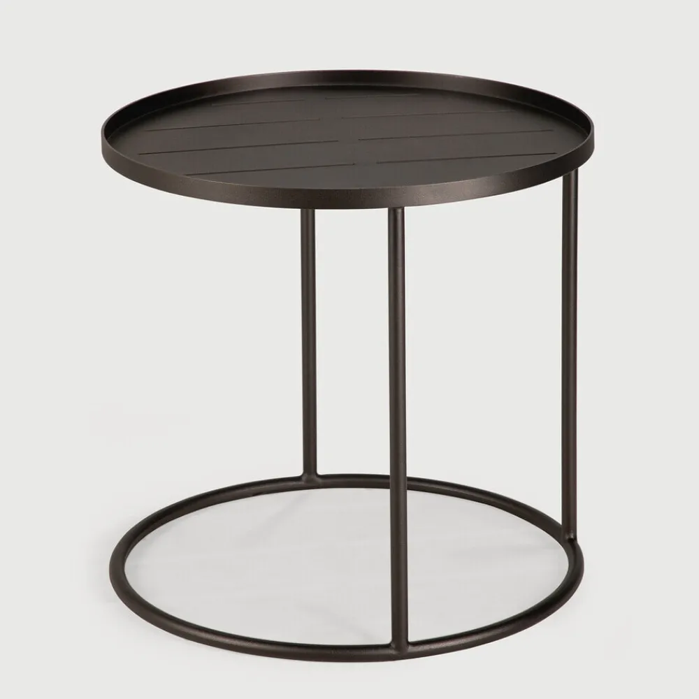 Ethnicraft Loungetafels & Bijzettafels|Ronde Outdoor Bijzettafel Tray 49cm, kleur Dark Bronze
