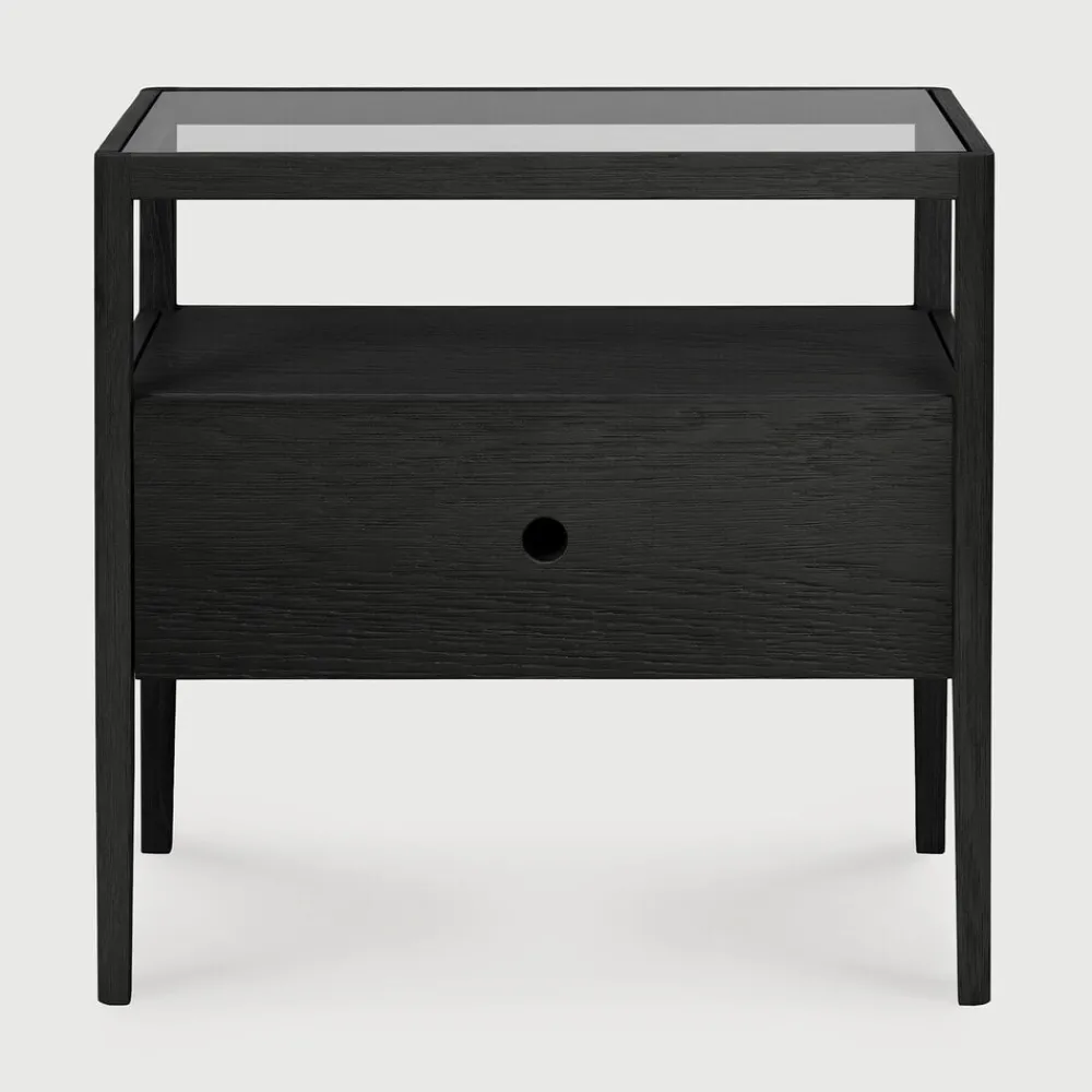 Ethnicraft Nachtkastjes|Nachtkastjes|Nachtkastje Spindle Hout en glas, Met 1 lade