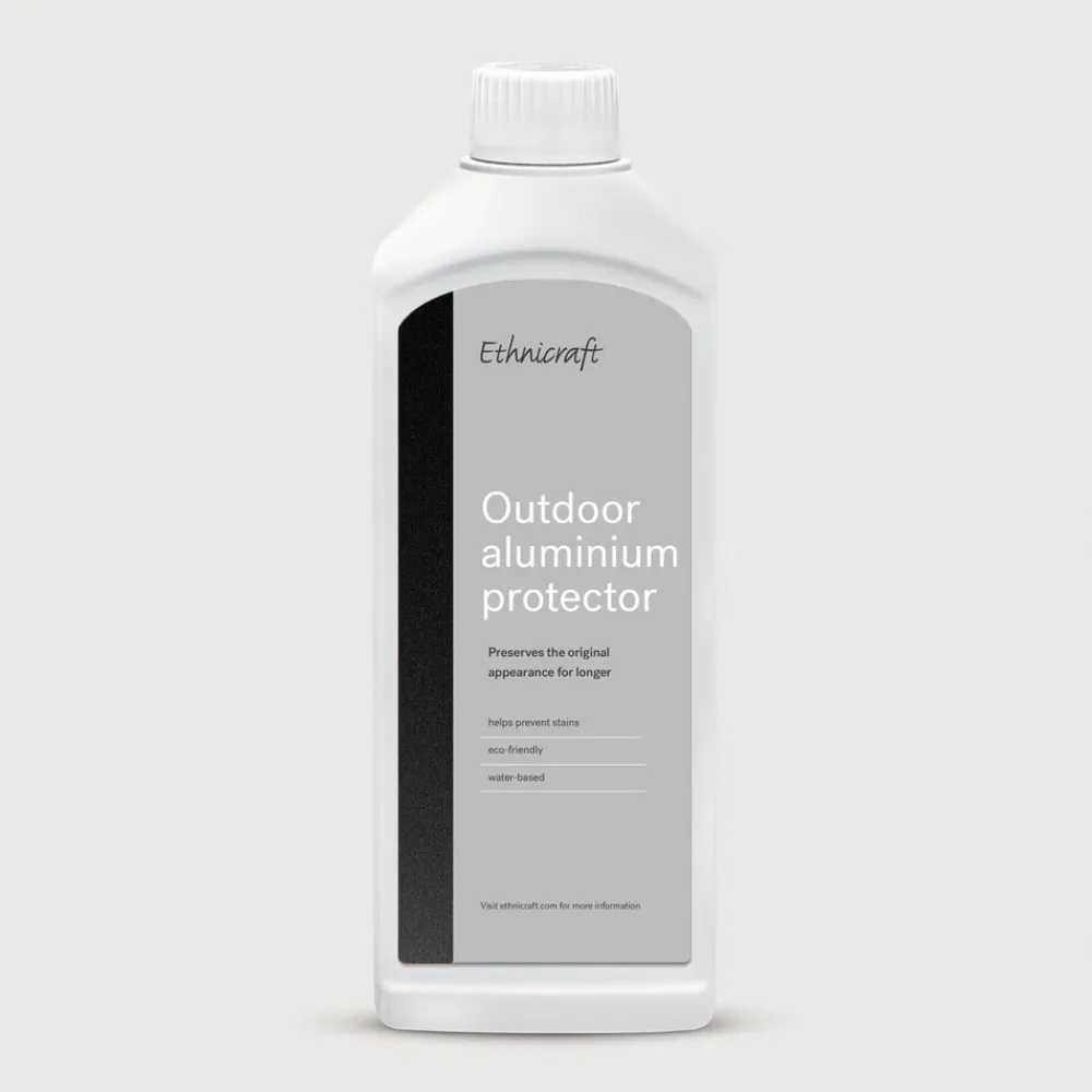 Om de originele afwerking van uw Ethnicraft outdoor-meubilair in aluminium te behouden en tegen vlekken te beschermen, raden we aan om regelmatig Outdoor Aluminium Beschermer te gebruiken. Deze watergebaseerde en milieuvriendelijke formule helpt om oppervlakken in aluminium tegen de elementen te beschermen, zodat hun uitzicht langer behouden blijft. Gebruik in combinatie met Ethnicraft Outdoor Aluminium Reiniger voor een optimaal onderhoud.