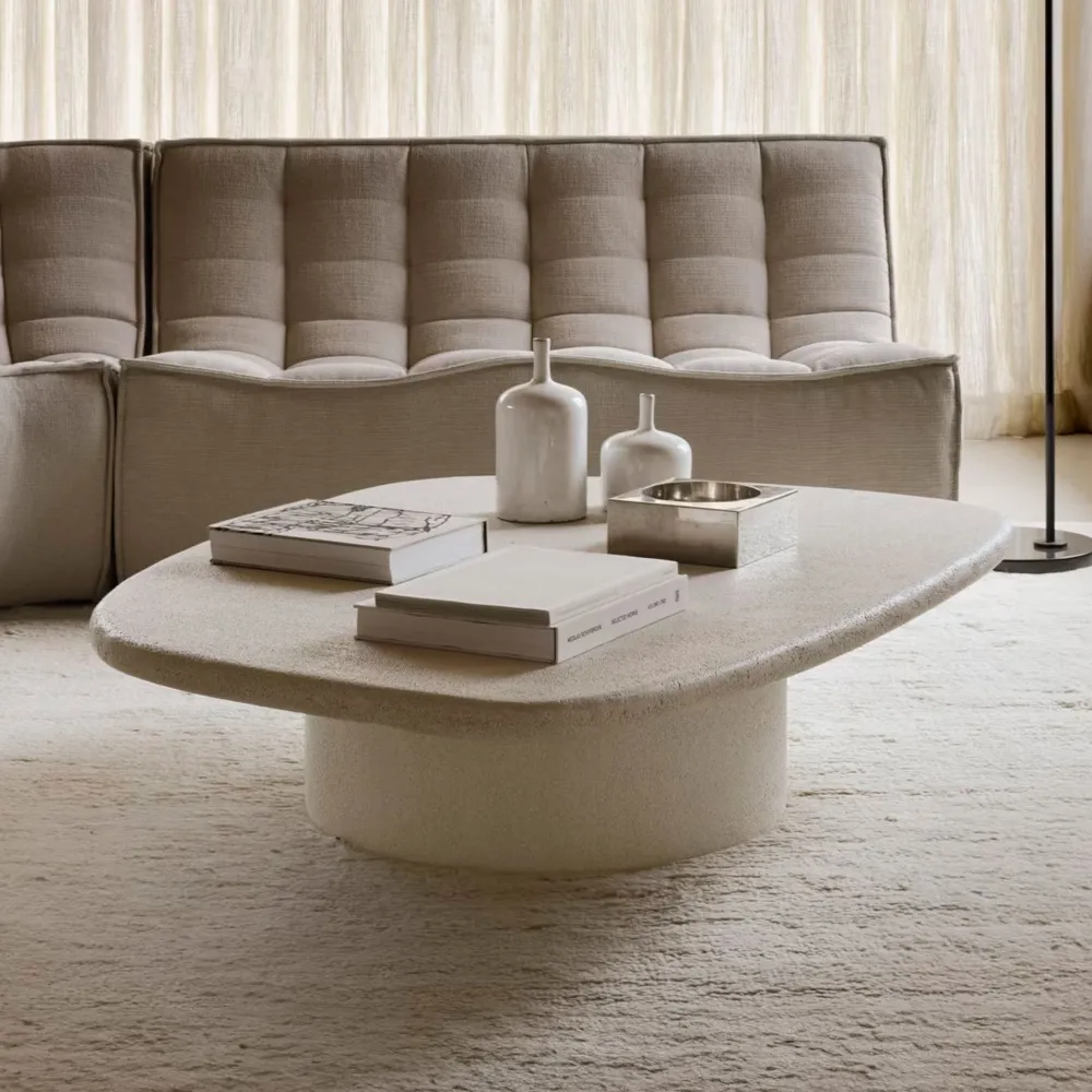 Ethnicraft Organische Salontafel|Organische Salontafel Elements Microcement, 134 x 96cm, kleur Off White