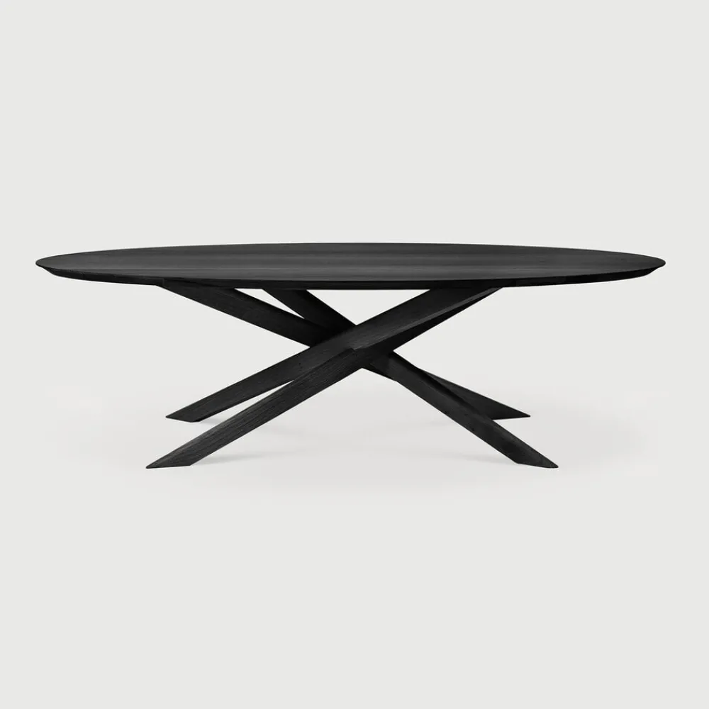 De Mikado eettafel, ontworpen door Alain van Havre, is al jaren één van onze meest iconische ontwerpen. Het sculpturale karakter is het resultaat van een zoektocht naar balans tussen functionaliteit en stabiliteit. De poten van Mikado passen in elkaar als een goed doordachte puzzel. Door het rechthoekige tafelblad te vervangen met een ellips wordt het gevoel van samenzijn en saamhorigheid vergroot. Het is makkelijk om met uw gasten te communiceren, u kunt met iedereen aan tafel praten en meer dan twaalf mensen passen comfortabel aan tafel. We hebben het zelf uitgeprobeerd!