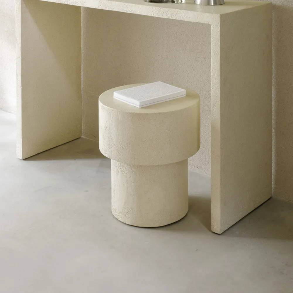 Ethnicraft Ronde Bijzettafel|Ronde Bijzettafel Elements Microcement, 41cm, kleur Off White