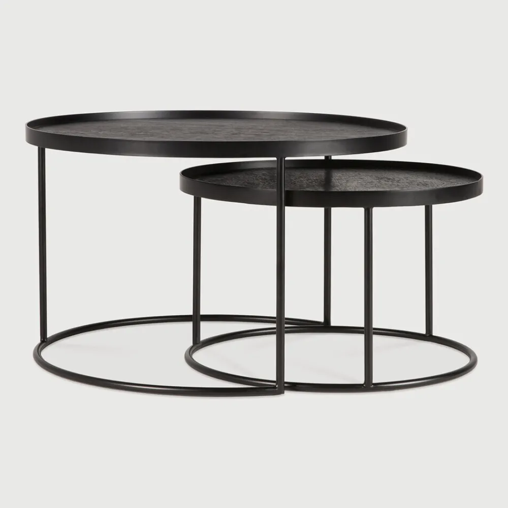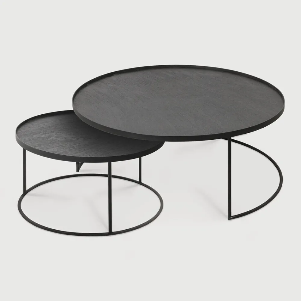 Ethnicraft Salontafel Set|Ronde Salontafel|Ronde Salontafel Tray Gelakt Hout, Set van 2 stuks