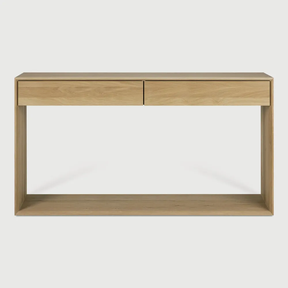 | Overige info: | Ontwerper: Alain van Havre De Nordic console van eikenhout heeft 2 lades. |