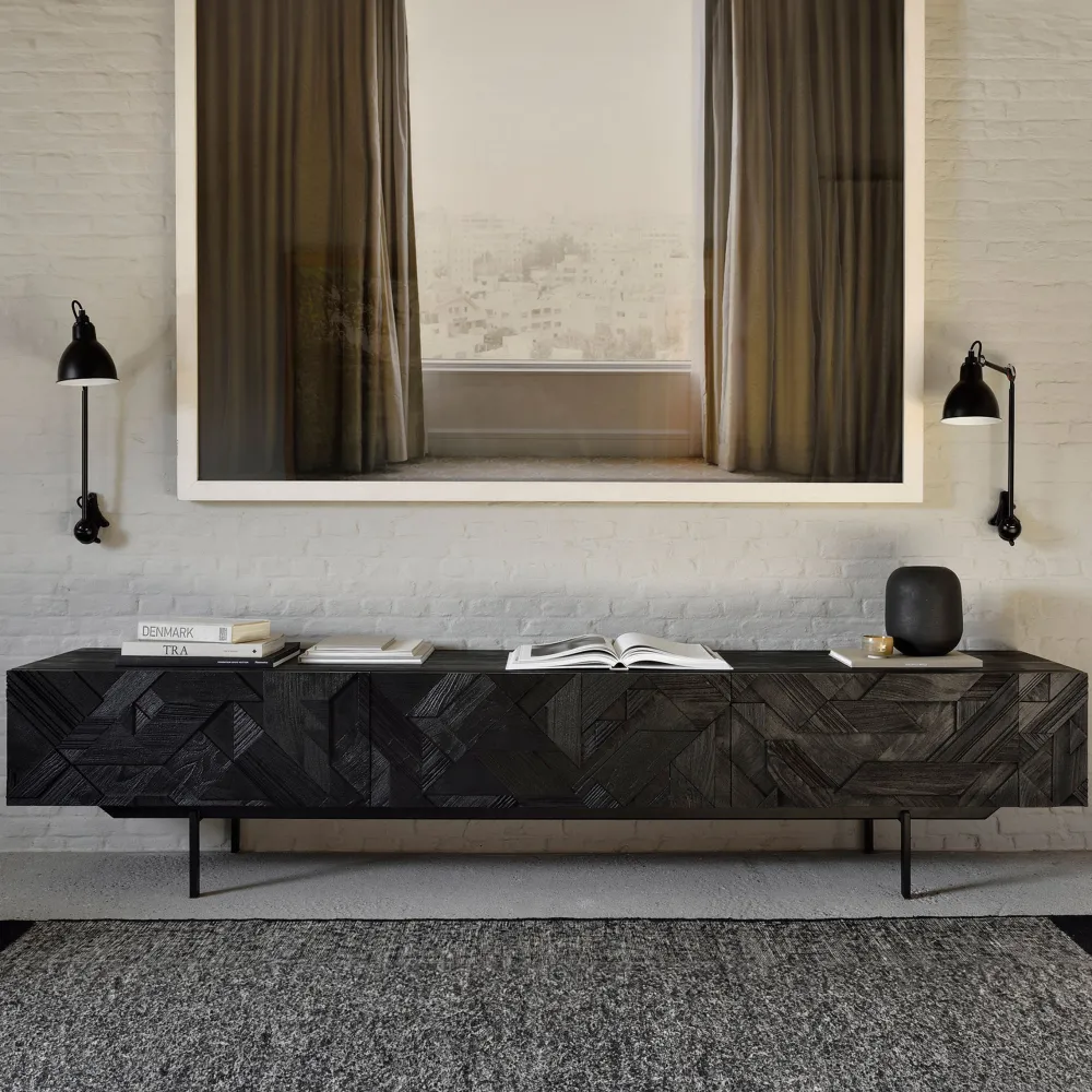 Ethnicraft Tv-Meubel Zwart|TV-meubel Graphic Gevernist Teakhout Zwart