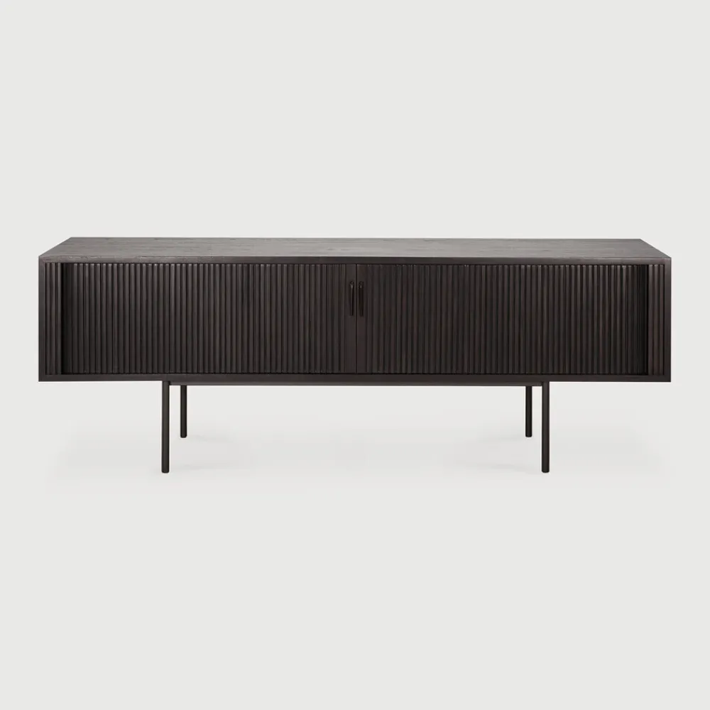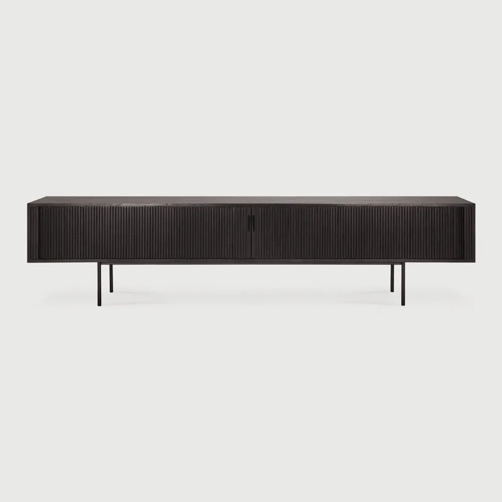 De Roller Max collectie valt op door zijn ontwerp met geritmeerd houten effect. Het tv-meubel biedt functionele opbergruimte in een opvallend ontwerp, met als resultaat een elegant en verfijnd item voor zowel residentiële als commerciële