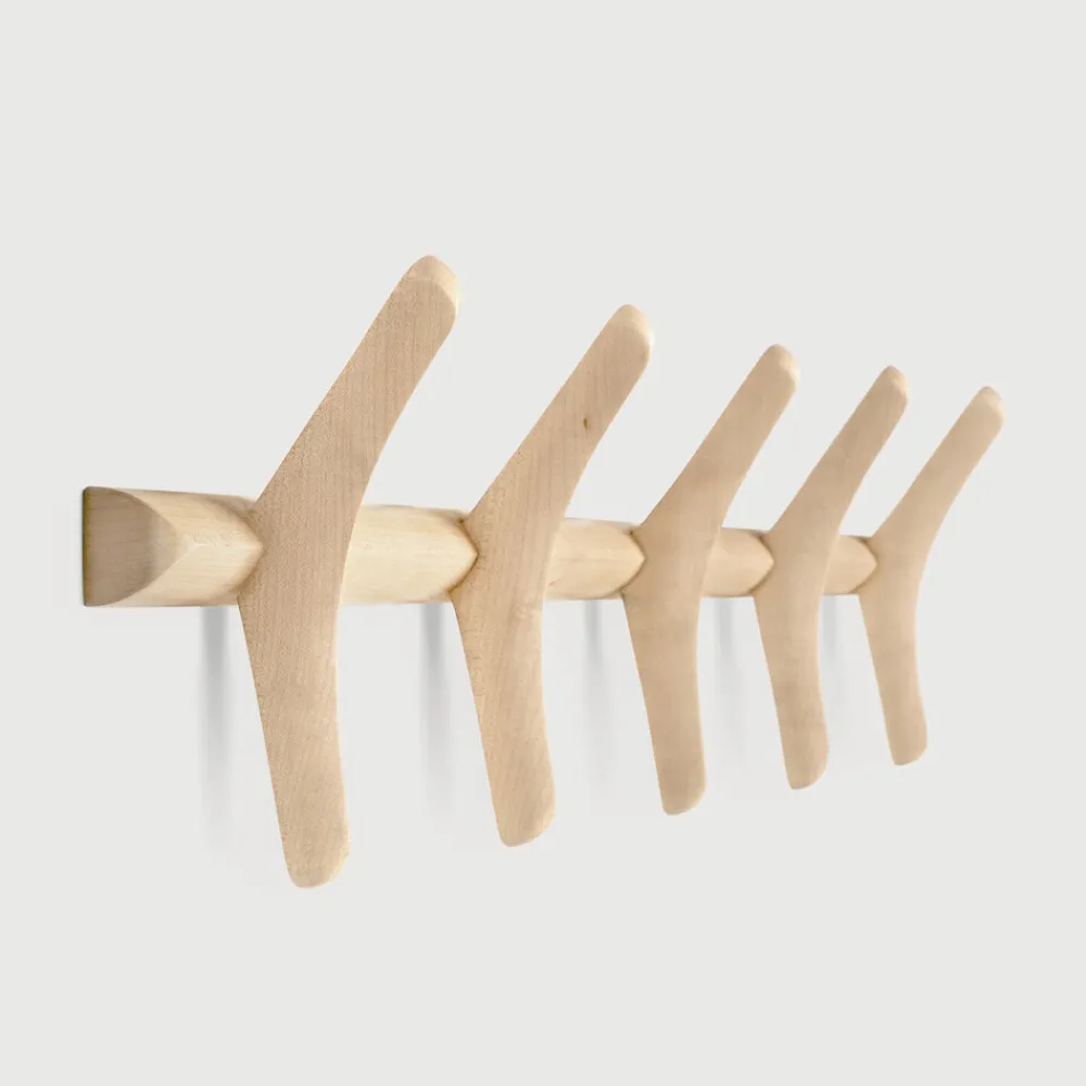 De PI collectie eert het ontwerp van de natuur, door de kracht, de rondingen en lijnen te behouden, zoals de natuur het bedoeld heeft. Interessante vormen worden ontdekt in deze slanke en stijlvolle, gepolijste doch onvolmaakte afwerking. Elke PI wandkapstok wordt met de hand afgewerkt om ervoor te zorgen dat het individuele karakter van het hout wordt gerespecteerd. Ontworpen door Alain van Havre.