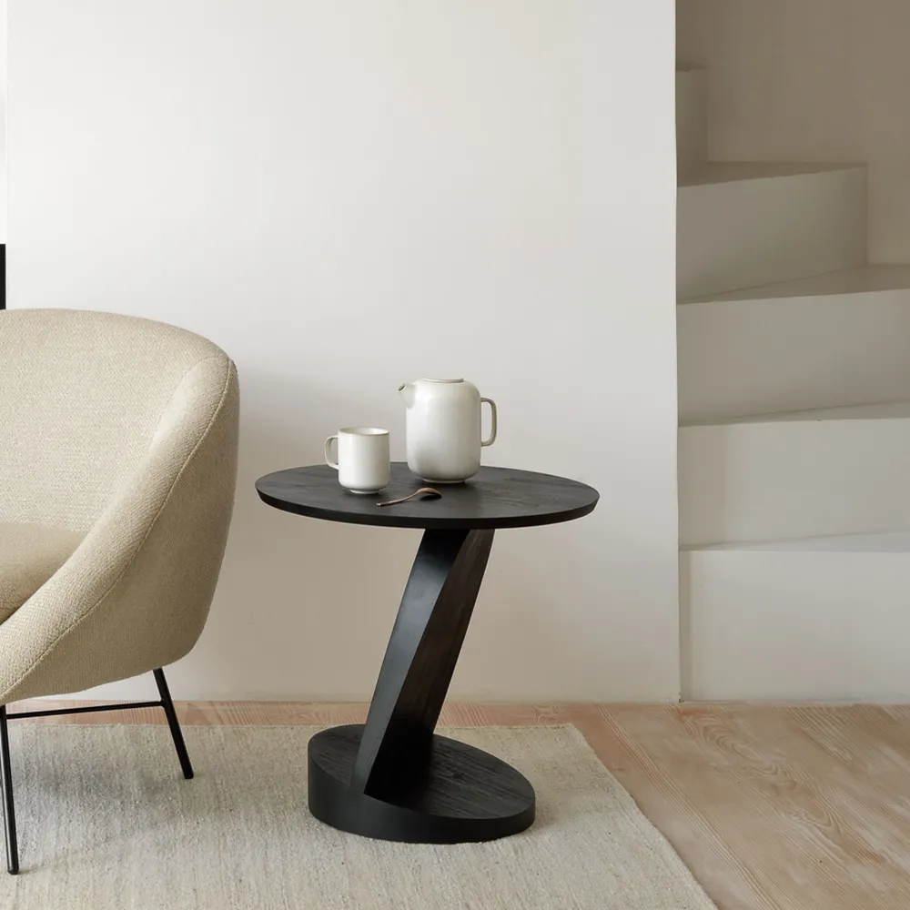Ethnicraft Zwarte Bijzettafel|Ronde Bijzettafel|Ronde Bijzettafel Oblic Gevernist Teakhout, 52cm