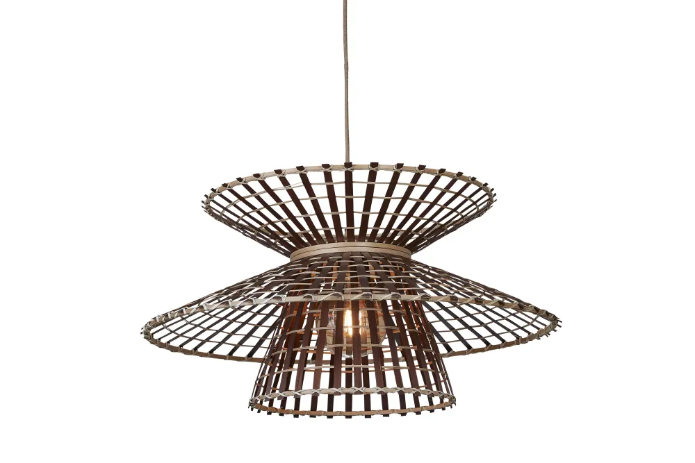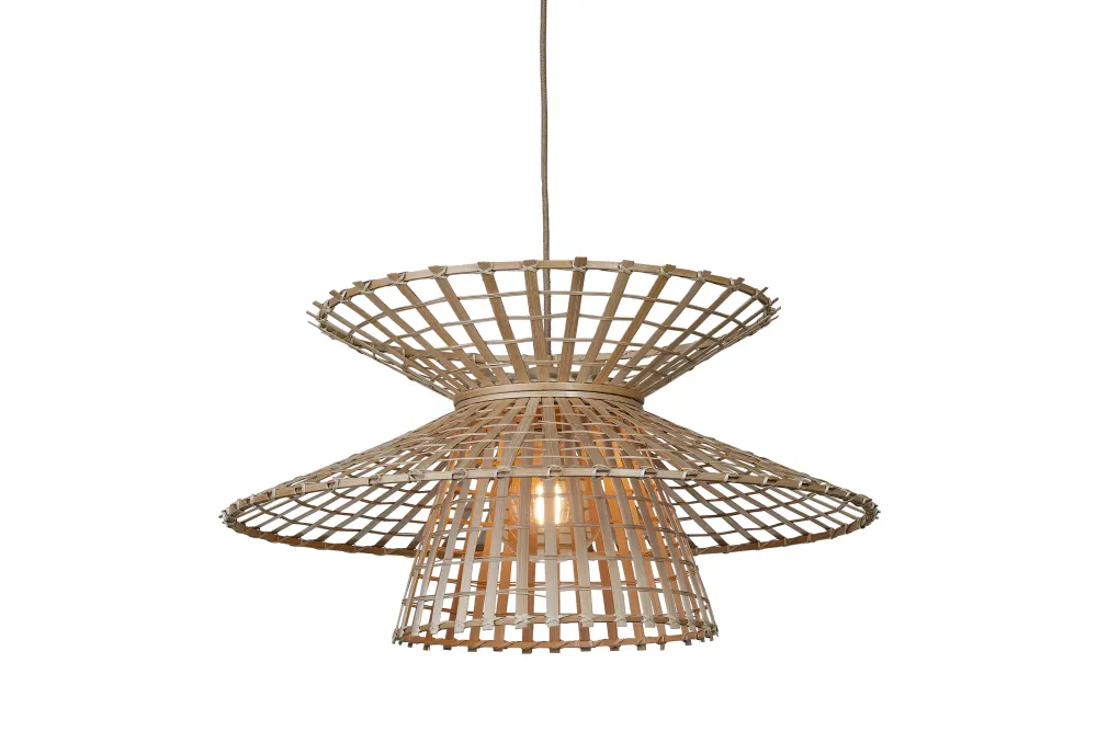 Merk:GOOD&MOJOMateriaal:Bamboe en ijzerBreedte:57cmHoogte:27/230cmDiepte:57cmType fitting:E27Dimbaar:Ja, deze lamp is ge…