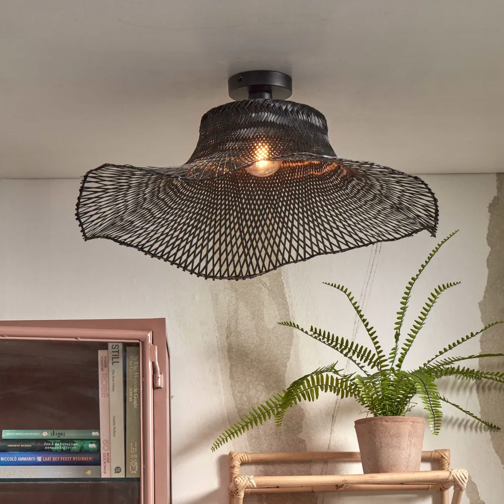 Merk:GOOD&MOJOMateriaal:Bamboe en ijzerBreedte:50cmHoogte:15cmDiepte:50cmType fitting:E27Dimbaar:Ja, deze lamp is geschi…