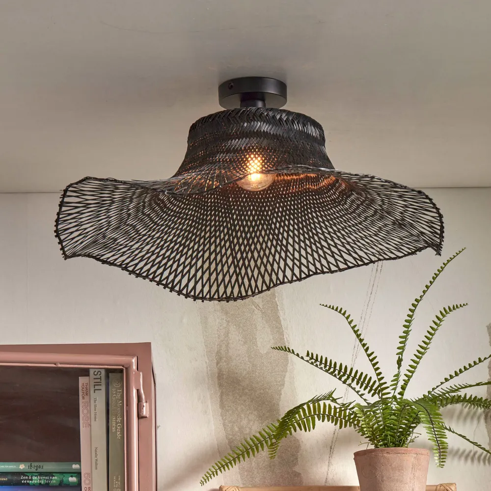 Merk:GOOD&MOJOMateriaal:Bamboe en ijzerBreedte:65cmHoogte:20cmDiepte:65cmType fitting:E27Dimbaar:Ja, deze lamp is geschi…