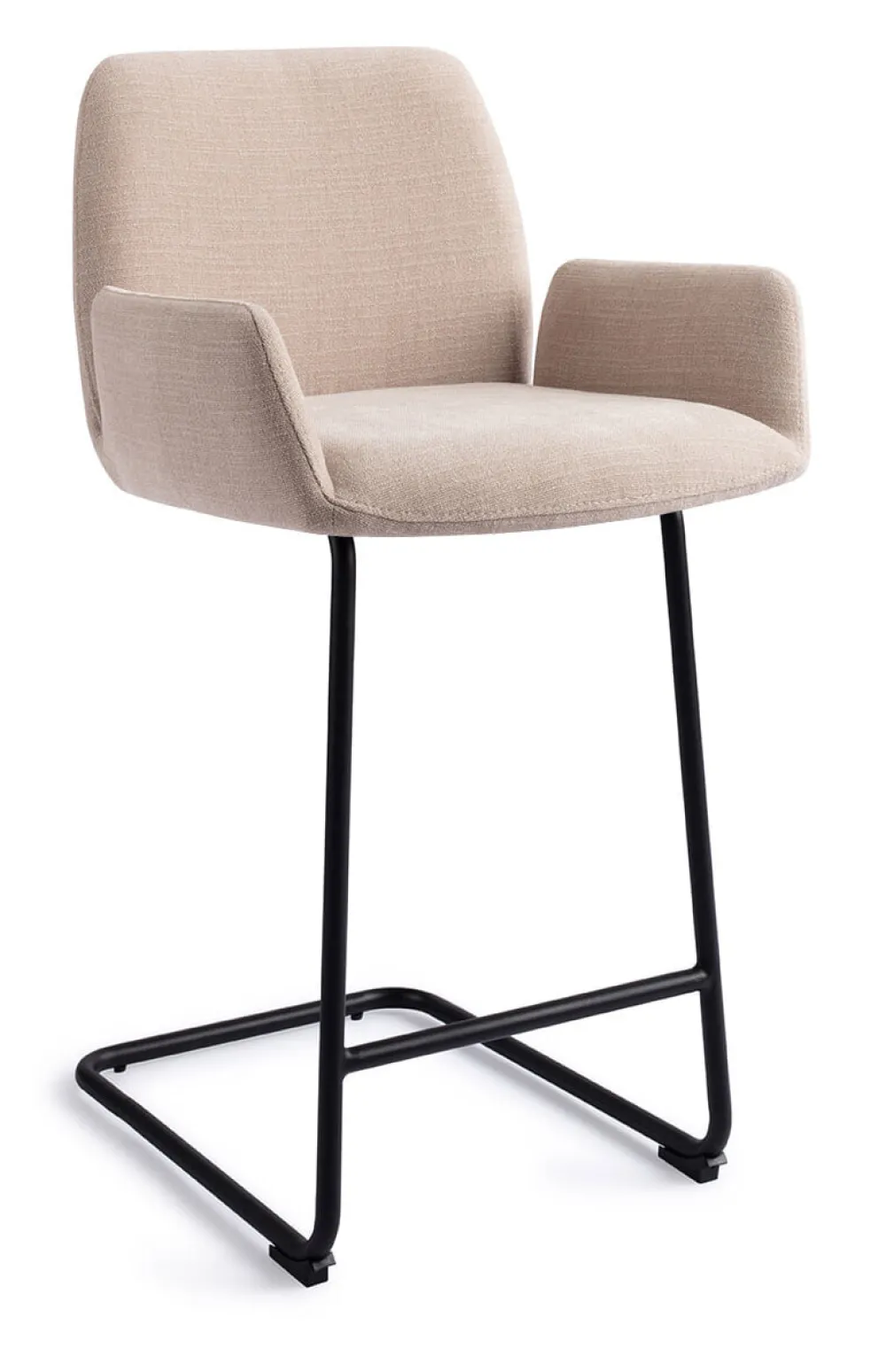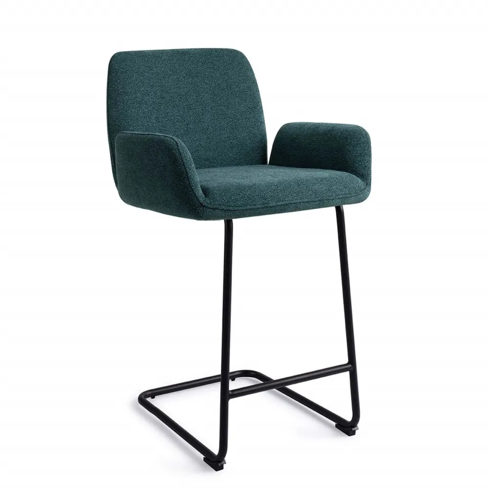 De armleuningen van de Misaki barkruk zijn een beetje los van de rugleuning. Deze eigenschap geeft de stoel bijna het uiterlijk van uitgestrekte vleugels, wat de stoel een licht karakter geeft. Bovendien bieden de armleuningen ondersteuning en comfort. De bekleding is een duurzame 100% polyester stof die er uitziet en voelt extreem zacht en luxe.