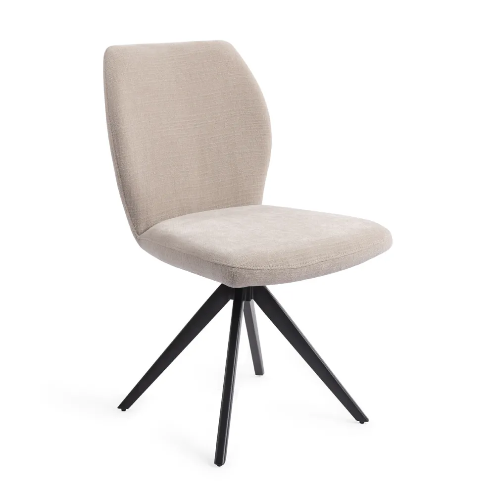 De Ikata eetkamerstoel kenmerkt zich door de zachte stoffering die in de verte iets weg heeft van luxe badstof. Het is een zachte, duurzame polyester die erg gebruiksvriendelijk is. De Ikata is verkrijgbaar in vier naturel kleuren.