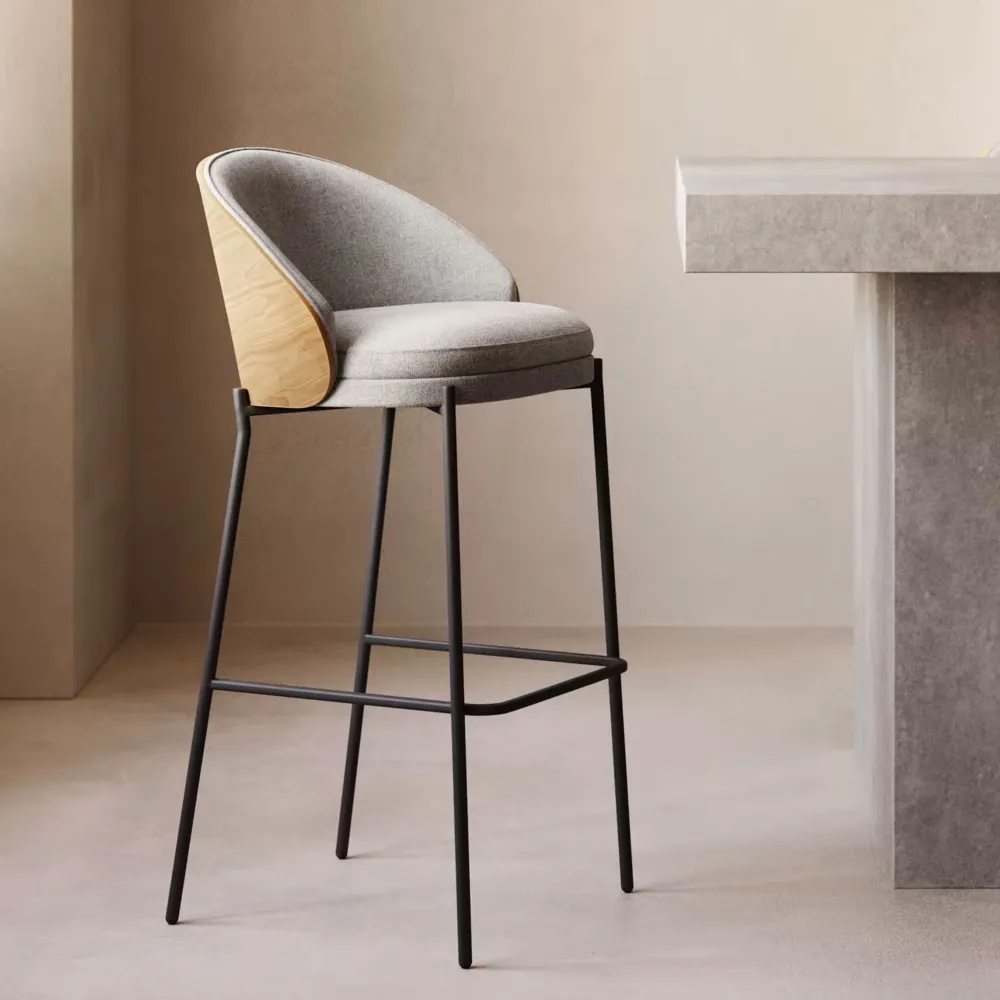 Kun jij niet kiezen tussen verschillende materialen en vind je een barkruk met een stoffen ziting net zo mooi als een houten variant? Dan hebben we goed nieuws voor je. Barkruk ‘Eamy’ van Kave Home brengt deze twee materialen samen. De rondgevormde stoffen zitting biedt fijn comfort, terwijl de essenhouten rugleuning naast stevigheid ook een prachtige look geeft. Het derde materiaal vind je terug in het onderstel dat van metaal is gemaakt.