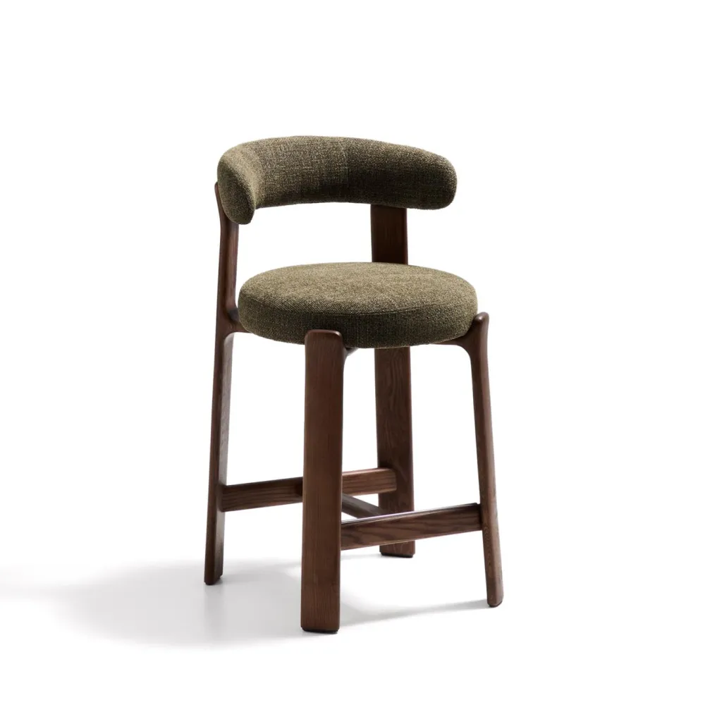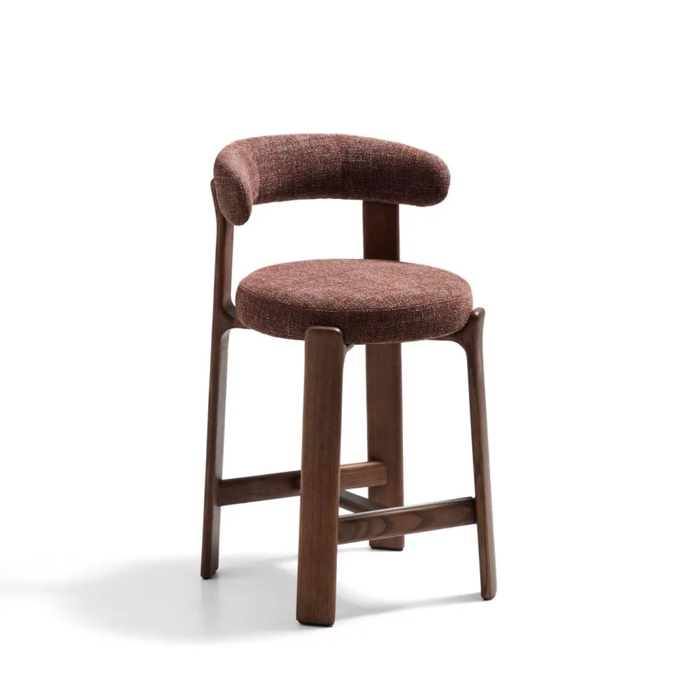 - Kruk bekleed met tweekleurig beige chenille met gerecycled polyester en met grove structuur.