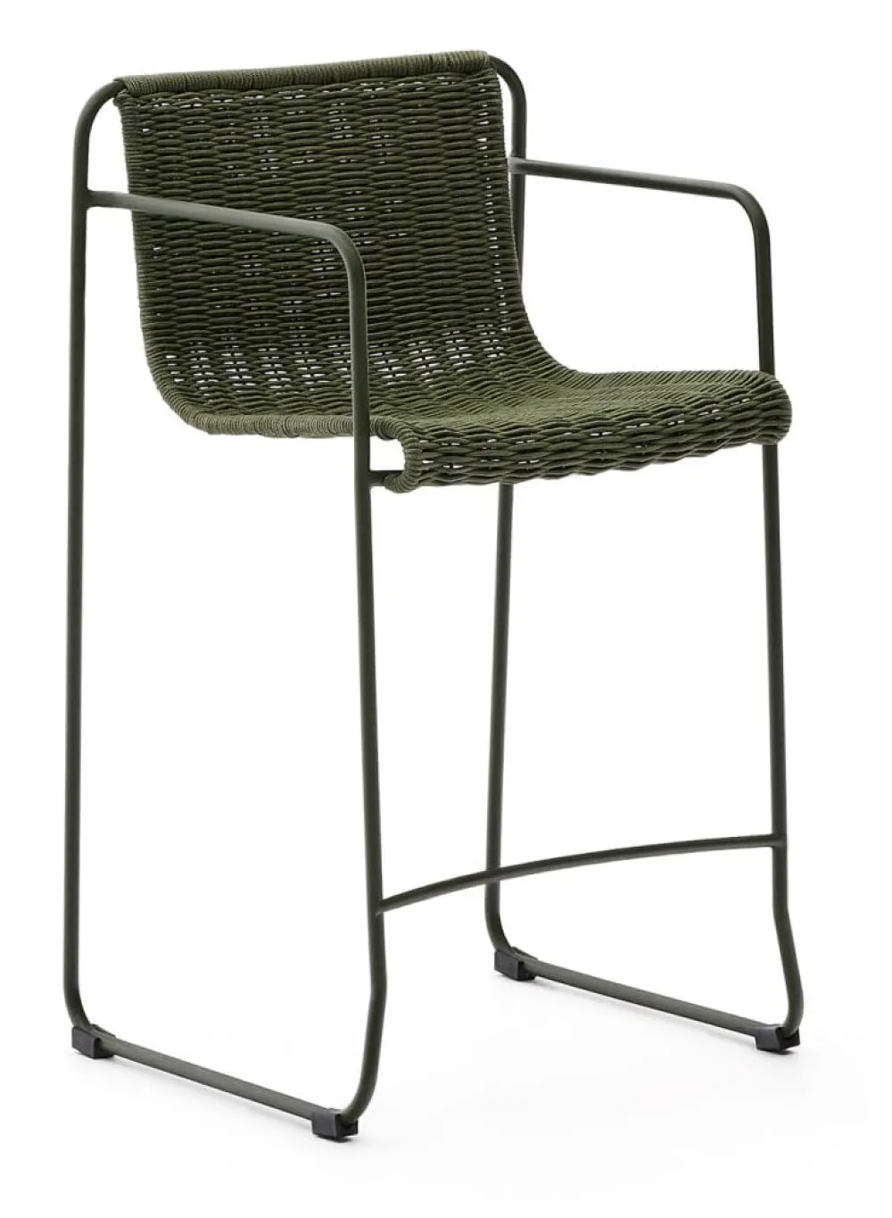 Deze kruk, exclusief ontworpen door Yonoh Studio voor Kave Home, vindt de mediterrane essentie opnieuw door middel van een eigentijdse en levendige benadering. Door de gegalvaniseerde stalen structuur onderscheidt hij zich door zijn duurzaamheid dankzij de weerstand tegen roest en corrosie en zijn vermogen om te passen in alle soorten buitenruimtes. De zitting en rugleuning, gemaakt van handgeweven, UV-bestendig touw en bevestigd aan een buizenstructuur, bieden comfort en een unieke stijl. Het slede-ontwerp en de royale zitmaten zorgen voor een ongeëvenaarde comfortabele ervaring. Dit meubel maakt deel uit van de Maurina collectie, die de schoonheid van traditionele materialen en vakmanschap combineert met eigentijdse lijnen, ideaal voor diegenen die een balans zoeken tussen tijdloos en eigentijds in hun huis.