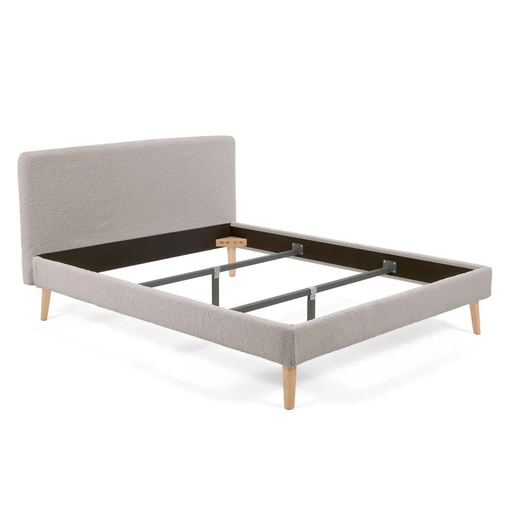 - Bed met verwijderbare bekleding. Hoofdbord bekleed met stof in schapenvacht-stijl. Voor matrasmaat 160 x 200 cm.