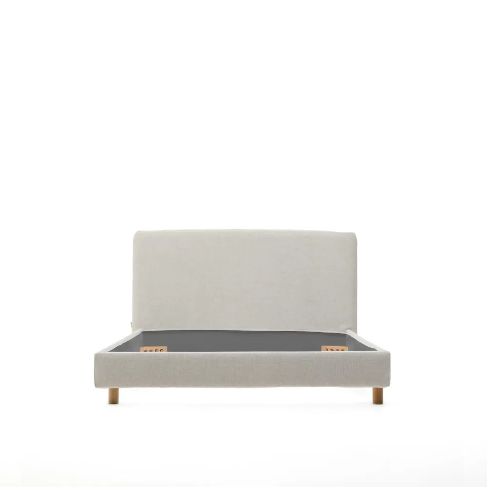 - Bed met afneembare hoes en massief houten poten van beukenhout voor matras van 160 x 200 cm.