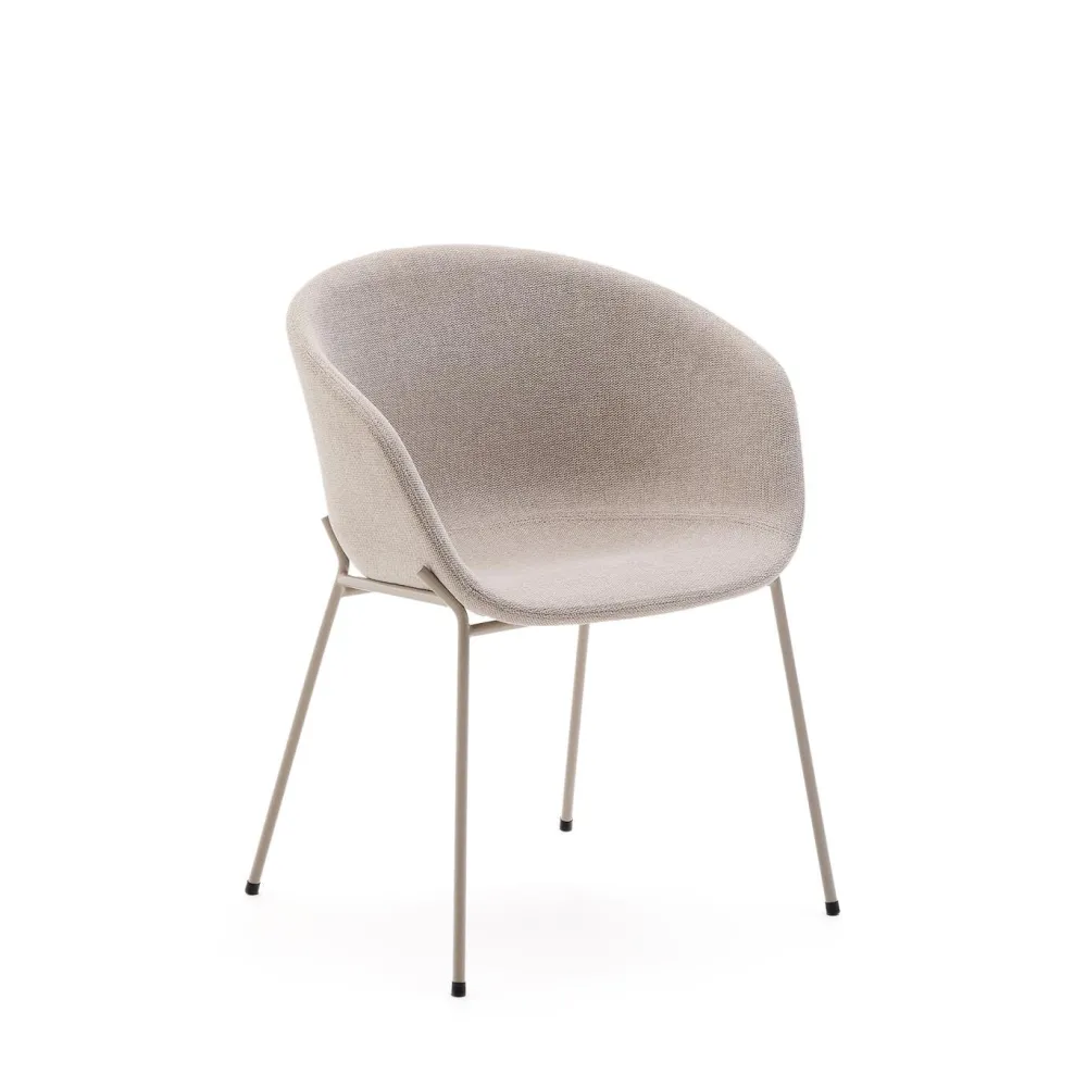 - Stoel met armleuningen. Zitting gemaakt van geïnjecteerd schuim en bekleed met beige chenille.