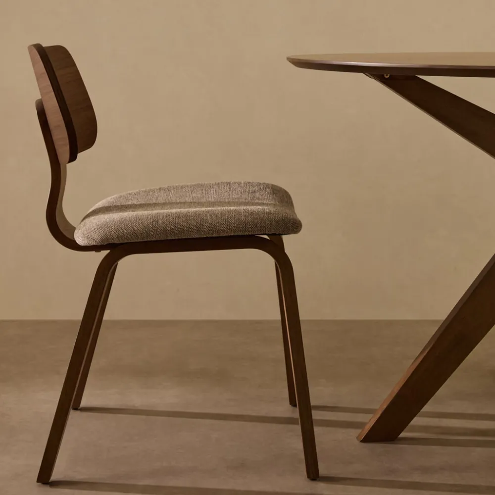 Deze stoel van walnootfineer valt op door zijn tijdloze en functionele design. De zitting, bekleed met chenille, biedt extra comfort en zachtheid en benadrukt tegelijkertijd zijn uitnodigende en elegante karakter. Deze stof, bekend om zijn delicate textuur en duurzaamheid, zorgt voor een verfijnde en warme afwerking die de materialen van de structuur perfect aanvult. Met aandacht voor de details die het verschil maken, zijn de stoelpoten voorzien van vloerbeschermers die krassen of sporen voorkomen. Zo wordt niet alleen de vloer beschermd, maar ook de integriteit van de stoel behouden. Deze praktische eigenschap biedt gemoedsrust voor gebruik op elke ondergrond.