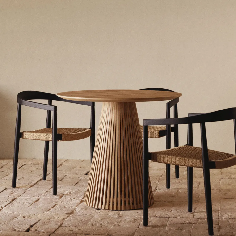 - Ronde tafel gemaakt van massief teakhout.