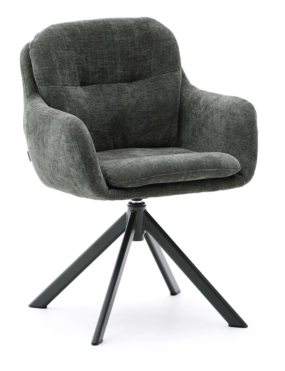 - Draaistoel met armleuningen bekleed met zacht aanvoelende chenille met een lichte structuur.