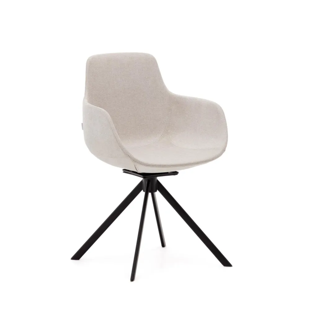 - Bureaustoel bekleed in beige chenille met matzwarte stalen poten.