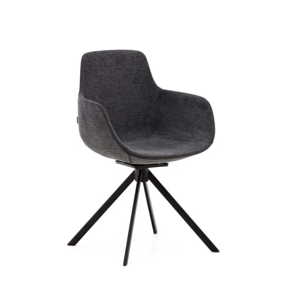 - Draaibare terugkerende zitting met stalen poten en matzwarte afwerking.