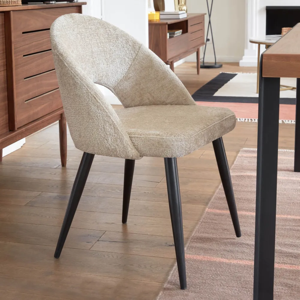 Een aaibare stoel met een twist, dat is eetkamerstoel Mael uit de Kave Home collectie. Het design van de stoel zagen we vooral terug in het midden van vorige eeuw en is nu helemaal up-to-date door, onder andere, het gebruik van de stof. De stoel is bekleed met de trendy en zachte chenille stof. De ronde zitting heeft een opening, waardoor de stoel anders dan anders is. Ook zorgt de ronde vorm voor een heerlijk comfortabele zit.