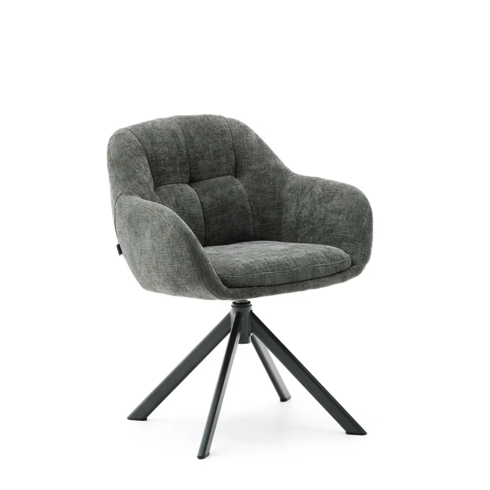 - Draaistoel met armleuningen bekleed met zacht aanvoelende chenille met een lichte structuur.