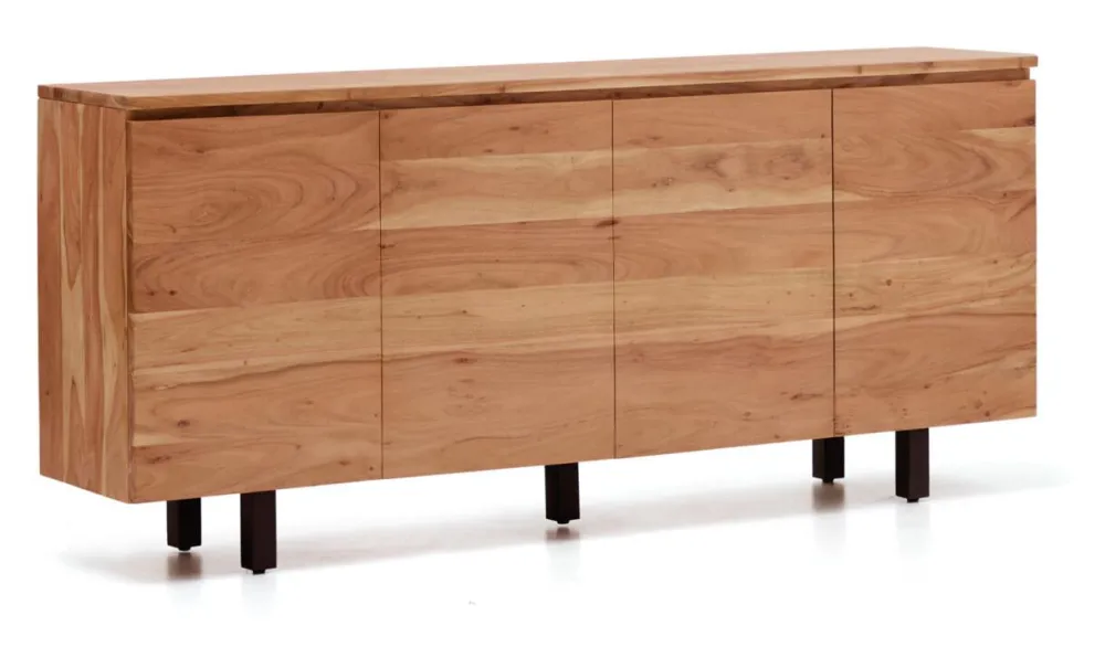 De Uxue collectie herdefinieert functionaliteit en stijl in elke ruimte met zijn strakke, eigentijdse ontwerp. Het massieve acaciahout met gebleekte afwerking straalt een unieke warmte uit en benadrukt de houtnerf, wat licht en verfijning in de kamer brengt. Elke deur is perfect geïntegreerd in het geheel, waardoor een harmonieus en minimalistisch beeld ontstaat dat zich aanpast aan elk type decoratie, van de meest moderne tot de meest klassieke. De zwart afgewerkte stalen poten zorgen voor een elegant en subtiel contrast, verheffen de structuur en zorgen voor stabiliteit en duurzaamheid. De poten zijn verstelbaar, zodat oneffenheden in de vloer kunnen worden overbrugd en het dressoir altijd perfect waterpas staat. De soft-close scharnieren bieden comfort en veiligheid bij het openen en sluiten en beschermen zowel het meubel als de inhoud. Dit dressoir is de perfecte oplossing voor wie op zoek is naar opbergruimte, tijdloos design en robuustheid in één meubelstuk. Hiermee wordt het de onbetwiste protagonist van elke kamer.