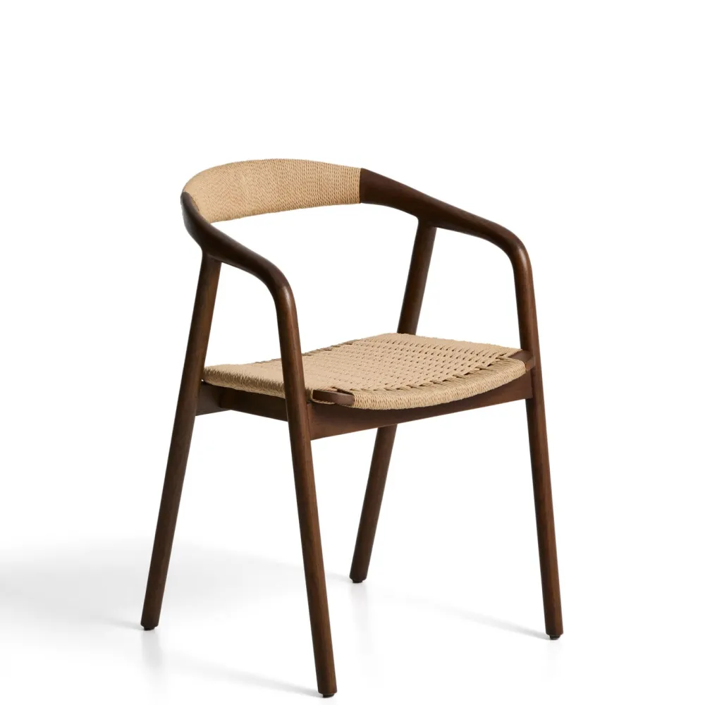 Derile combineert handgemaakt design en evenwichtige proporties in meubels die balans en warmte uitstralen. Het massieve eikenhout beschikt over een FSC™ 100% Chain of Custody-certificaat met een garantie voor een verantwoord bosbeheermodel en vertoont een structuur met unieke nerven die het eigen karakter van het materiaal onthullen. De matte afwerking versterkt de textuur en het authentieke gevoel van het hout. De zitting en rugleuning zijn van handgevlochten papiertouw, een lichtgewicht vlechtwerk dat comfort en een evenwichtige visuele aanwezigheid biedt. De omhullende vorm creëert een comfortabele en ontspannen ondersteuning, ideaal om te genieten van momenten van rust.