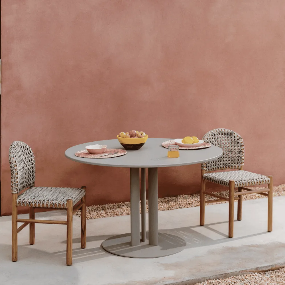 Kave Home Eettafels Voor In Je Tuin|Ronde Tuintafel Sedalis Aluminium, 120cm, kleur Taupe