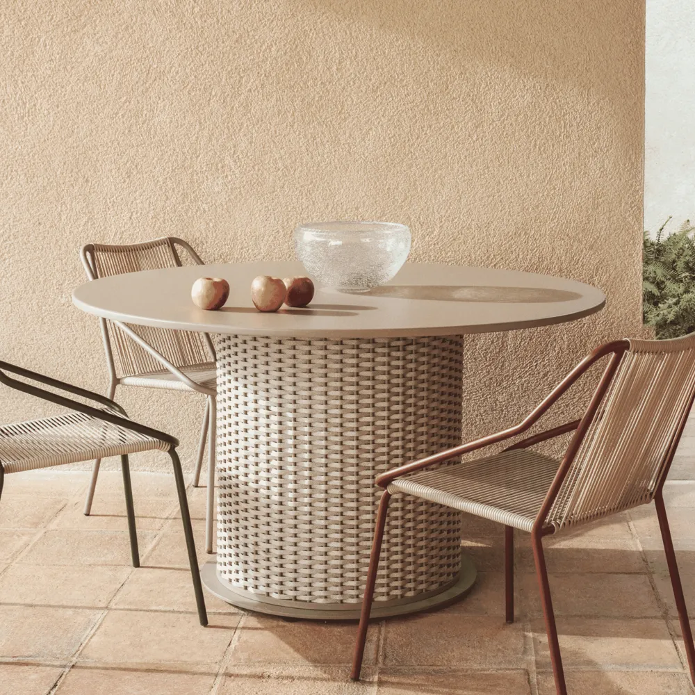 De Sedalis tafel is de essentie van elegantie en duurzaamheid in een collectie die elke ruimte transformeert. De tafel beschikt over een aluminium en stalen structuur gecombineerd met handgevlochten touw en heeft het rechte lijnen en afgeronde hoeken voor een moderne, tijdloze esthetiek. De tafel heeft een aluminium blad en een UV-bestendig touw onderstel en is versterkt met staal voor een hoge stabiliteit. De E-Coating-techniek zorgt voor bescherming tegen roest en corrosie en garandeert duurzaamheid in buitenruimtes. Maak je ruimte compleet met de bijpassende bijzettafel en creëer een set die functionaliteit en stijl in de buitenruimte combineert met lichtheid en bestendigheid.