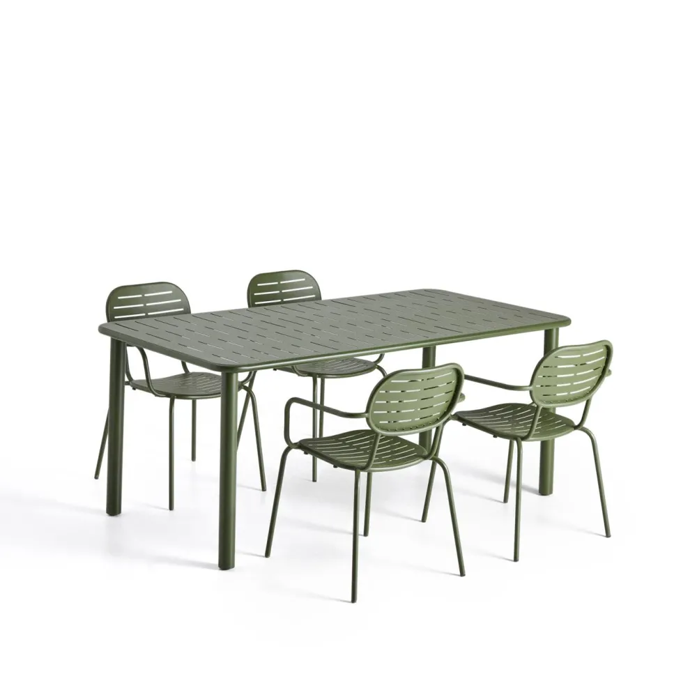 Kave Home Eettafels Voor In Je Tuin|Tuinset Brai Met tuintafel en 4 stoelen, 180 x 90cm, kleur Donkergroen