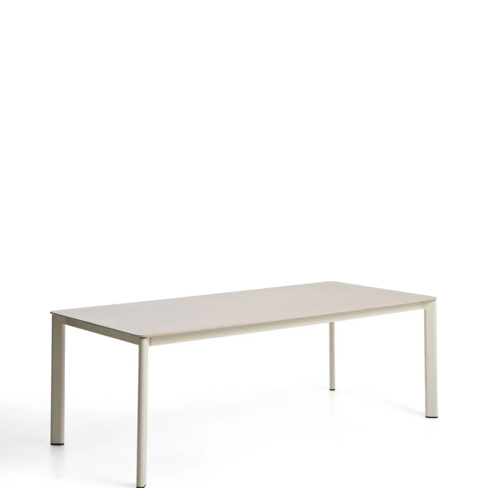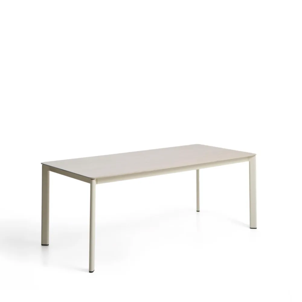 De Anafi tafel combineert gesinterde steen en aluminium in een ontwerp dat vele jaren meegaat. Door het sobere uiterlijk en de robuuste materialen kan hij lang worden gebruikt, zowel binnen als buiten. Het tafelblad van gesinterde steen is bestand tegen krassen, vlekken en hoge temperaturen en bovendien tegen temperatuurschommelingen. Het materiaal is duurzaam en gemakkelijk te onderhouden. De aluminium structuur zorgt voor lichtheid en bescherming tegen corrosie, en garandeert stabiliteit en duurzaamheid. De poten zijn voorzien van plastic beschermers die de vloer beschermen en zorgen voor een stevige ondersteuning.