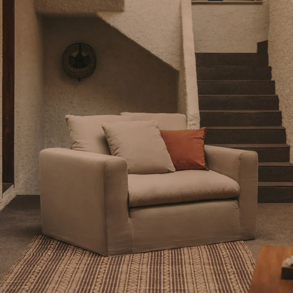 Nora combineert de tijdloze elegantie van linnen en katoen met een ontwerp met strakke lijnen, waardoor een collectie ontstaat die opvalt door een eigentijdse stijl en elegantie. De hoes, gemaakt van ademend, gestructureerd katoen en linnen, heeft een gesanforiseerde afwerking, waardoor de hoes na elke wasbeurt zijn oorspronkelijke grootte en vorm behoudt en een frisheid en lichtheid biedt die perfect is voor elke omgeving. Om de kwaliteit van de materialen en de afwerking van de stof te behouden, raden we aan de hoes professioneel te laten reinigen. De zitting heeft een zachte hardheid dankzij het brede ontwerp van gevlokt schuim en vezels met donseffect, die een gevoel geeft van omhullende zachtheid, direct perfect terugveert en je uitnodigt om te ontspannen in een aangename zitting. De rugleuning, ook met vezelvulling met donseffect, past zich fijnzinnig aan het lichaam aan en versterkt het comfort bij elk gebruik. Inclusief twee kussens met afneembare hoezen, ook met vezelvulling met donseffect, die extra comfort en veelzijdigheid toevoegen en schoonmaken en dagelijks onderhoud vergemakkelijken. De interne structuur is gemaakt van dennenhout, waardoor hij stevig en duurzaam is, en de lokale productie in Europa zorgt voor verminderde CO2-uitstoot en minimale impact op het milieu. De leverancier van de stof beschikt bovendien over een OEKO-TEX® STANDARD 100-certificering voor ecologisch veilige en milieuverantwoorde productie. Het resultaat is een functionele en comfortabele fauteuil met afneembare hoes, ontworpen voor degenen die op zoek zijn naar comfort en design in hun huis.