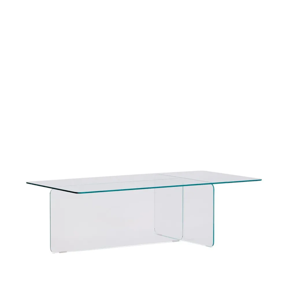 Met een eigentijdse en minimalistische esthetiek is deze salontafel van gehard glas de perfecte aanvulling voor elke ruimte die streeft naar verfijning en functionaliteit. De puurheid van het ontwerp wordt weerspiegeld in de naadloze verbinding tussen het tafelblad en de poten, een kenmerk dat de visuele helderheid en balans van de lijnen benadrukt. Gehard glas, vijf keer sterker dan conventioneel glas van dezelfde dikte, zorgt voor duurzaamheid en stevigheid, terwijl het visuele lichtheid behoudt die de ruimte en helderheid in de kamer versterkt. De veelzijdigheid wordt verder vergroot door discrete beschermers aan de basis, ontworpen om oppervlakken te beschermen en praktische bruikbaarheid toe te voegen. Dit stuk, met zijn eenvoudige maar boeiende ontwerp, belichaamt de perfecte fusie van vorm en functie, waardoor het een essentieel element is dat harmonieert met elke interieurstijl.
