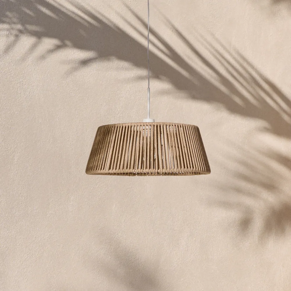 Deze lampenkap valt op door het geweven touwontwerp, dat een unieke textuur geeft aan elke buitenruimte. Deze lampenkap is ideaal voor het creëren van een warme en gezellige sfeer en combineert stijl en functionaliteit, waardoor terrassen en tuinen omgetoverd worden tot charmante hoekjes. De lampenkap is compatibel met de Fulvia, Kaede en Albir plafondlampen, waardoor het een veelzijdige optie is om aan te passen aan verschillende stijlen. De lamp is ook verkrijgbaar in verschillende kleuren, zodat u uw keuze kunt aanpassen aan uw inrichting. De bestendigheid tegen de buitenelementen zorgt voor een optimale duurzaamheid en biedt elegante en betrouwbare verlichting voor buitenruimtes die op zoek zijn naar een opvallend tintje.