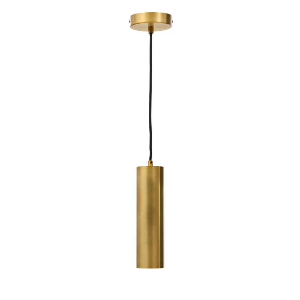 - Plafondlamp met cilindrische aluminium kap in beige gelakte afwerking.