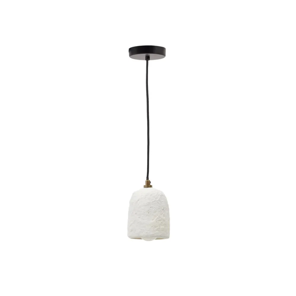 - Papier-maché plafondlamp met witte afwerking.