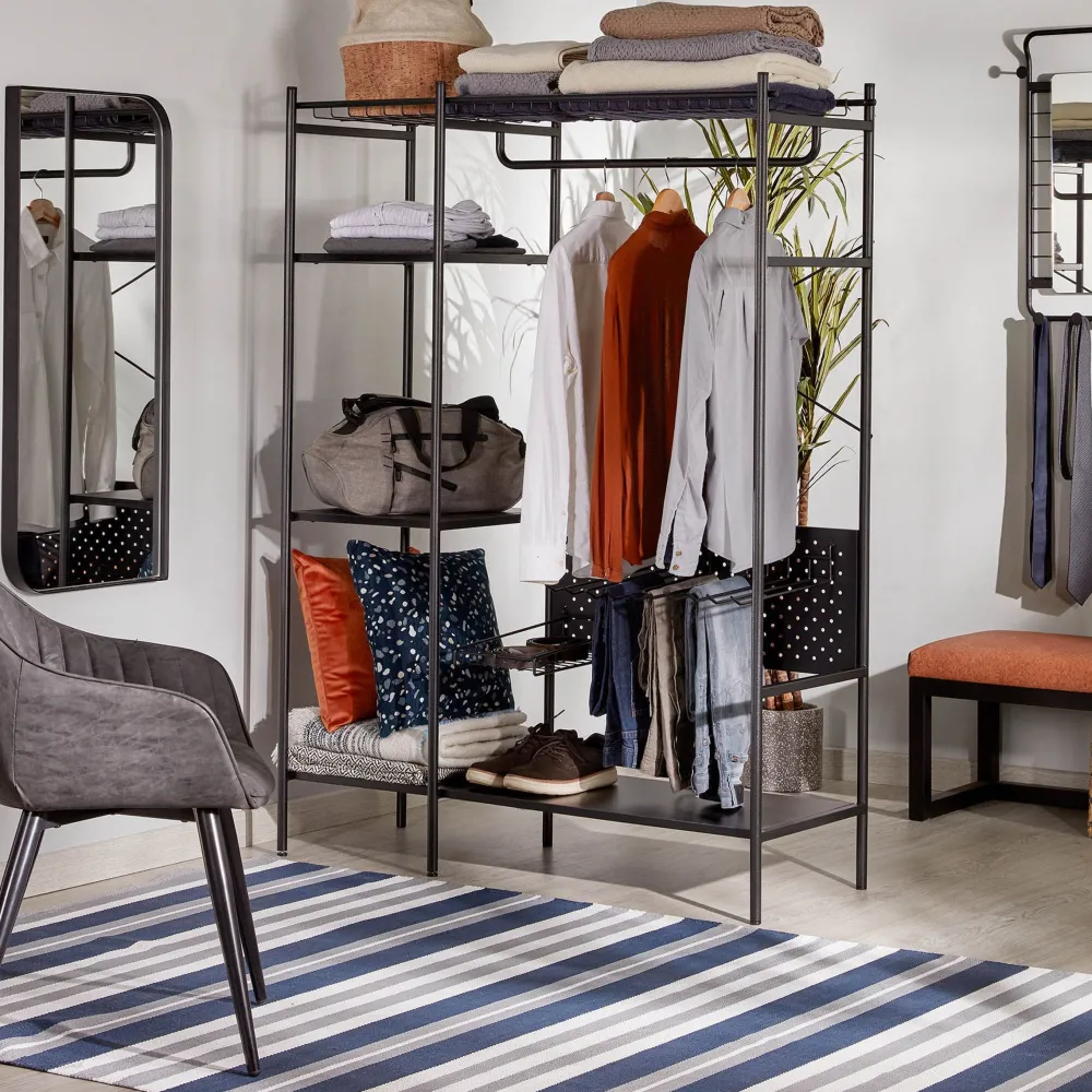 Dankzij het open ontwerp is het ideaal voor in de slaapkamer, logeerkamer of hal, waar je snel bij je kleding en spullen wilt kunnen. Het Storn kledingrek is eenvoudig, strak en zorgt voor orde en overzicht in de ruimte.
