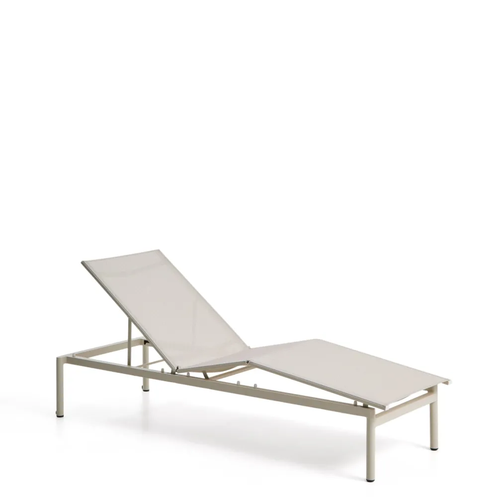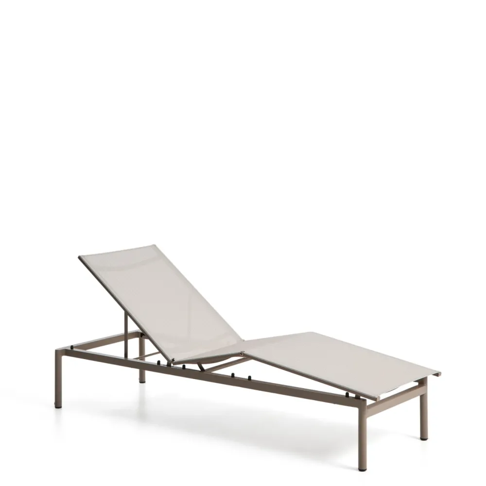 De Lesina ligstoel combineert een aluminium structuur met een oppervlak van textileen, geschikt voor continu buitengebru…