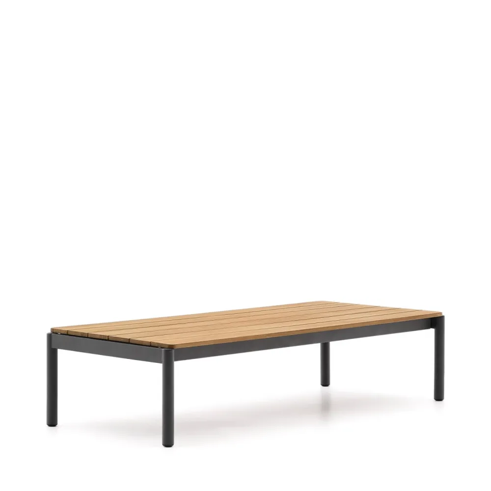 Kave Home Loungetafels & Bijzettafels|Outdoor Salontafel Sorells Teakhout en aluminium, 149 x 63cm, Grijs
