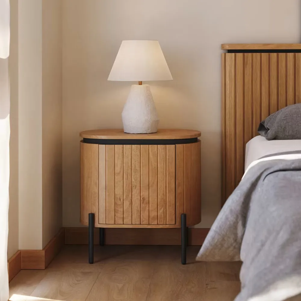 - Nachtkastje met een deurtje. Gemaakt van massief mangohout met een natuurlijke afwerking.